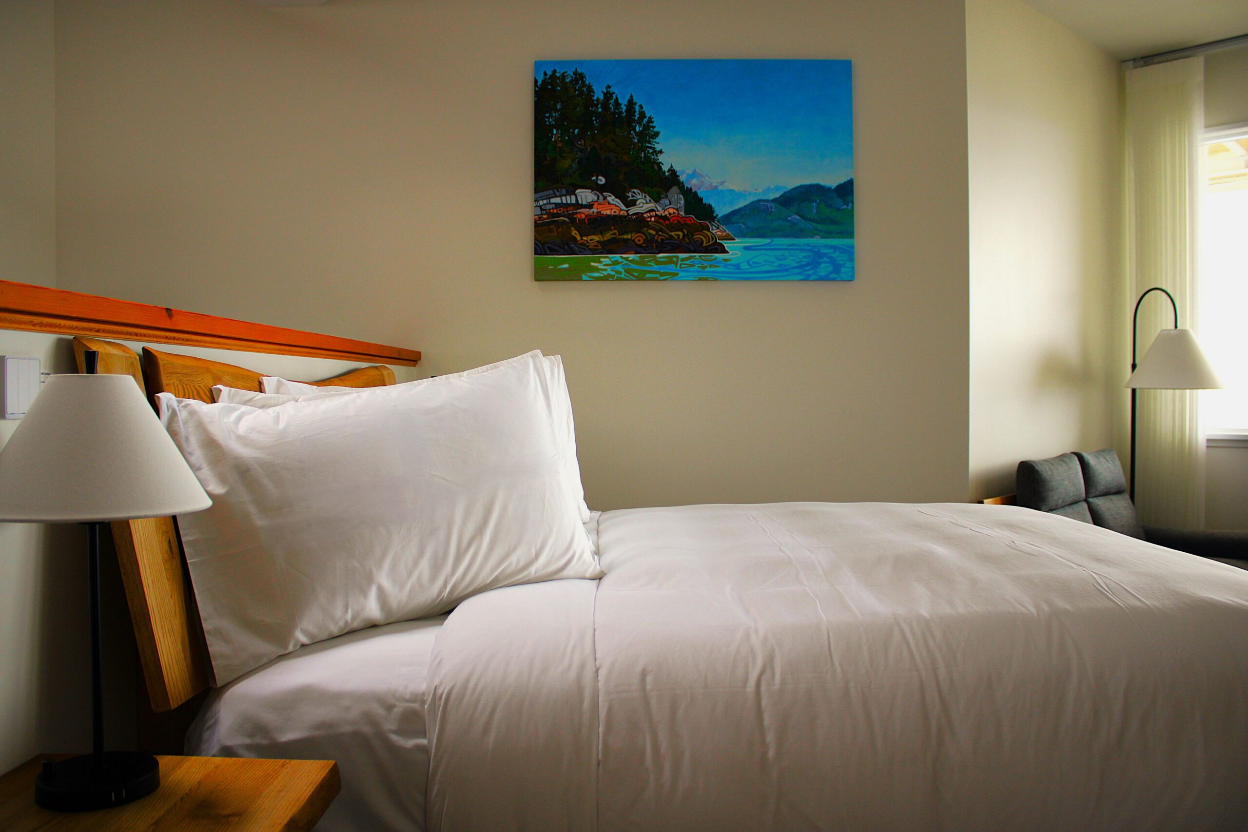 Enjoy king-sized beds with high-thread-count linens, gourmet touches, rain showers, and locally sourced personal care products. Fireplace service is available exclusively through our team for guests wishing to enjoy some extra warmth and ambiance.
